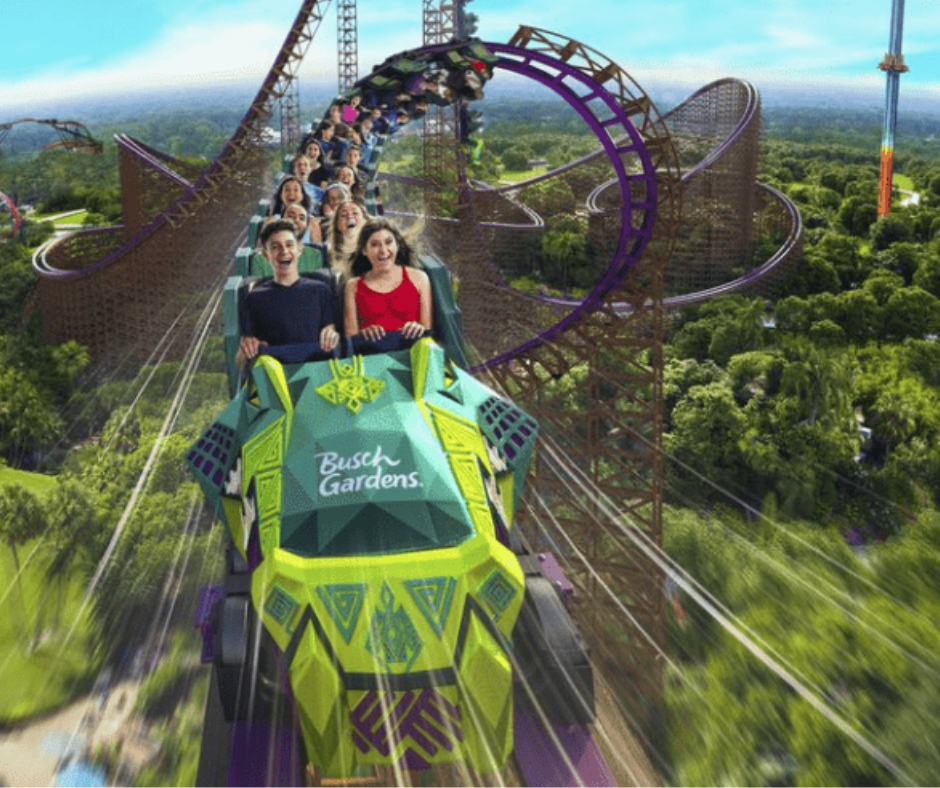 Embora localizado em Tampa, a cerca de 1h30 de Orlando, é um parque que combina zoológico e parque temático, famoso por suas montanhas-russas radicais e pela grande variedade de animais.